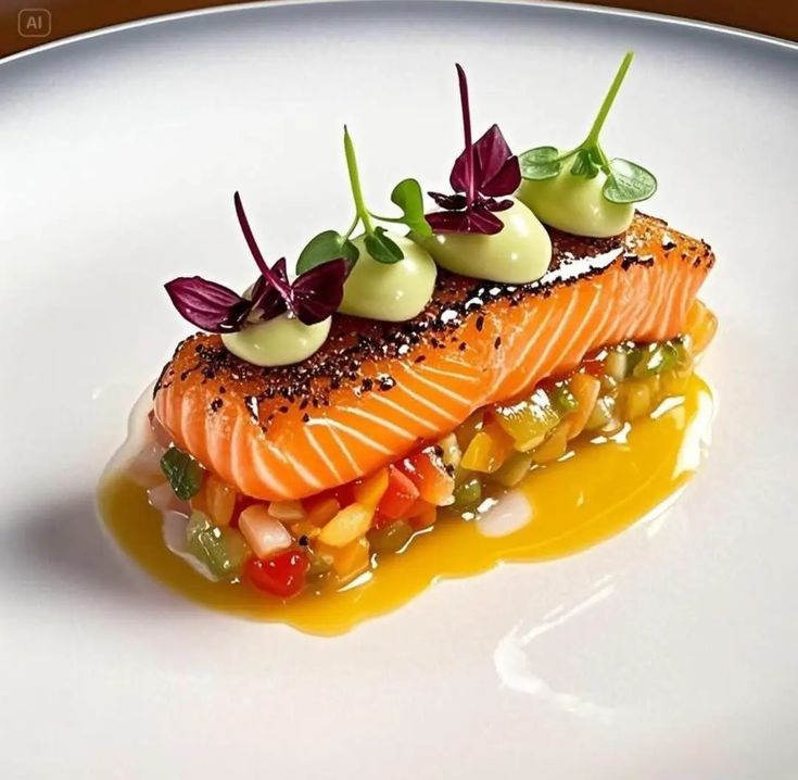 爐烤鮭魚菲力,搭配清爽的伏特加萊姆調味,呈現外口清爽、肉質細嫩的完美口感。