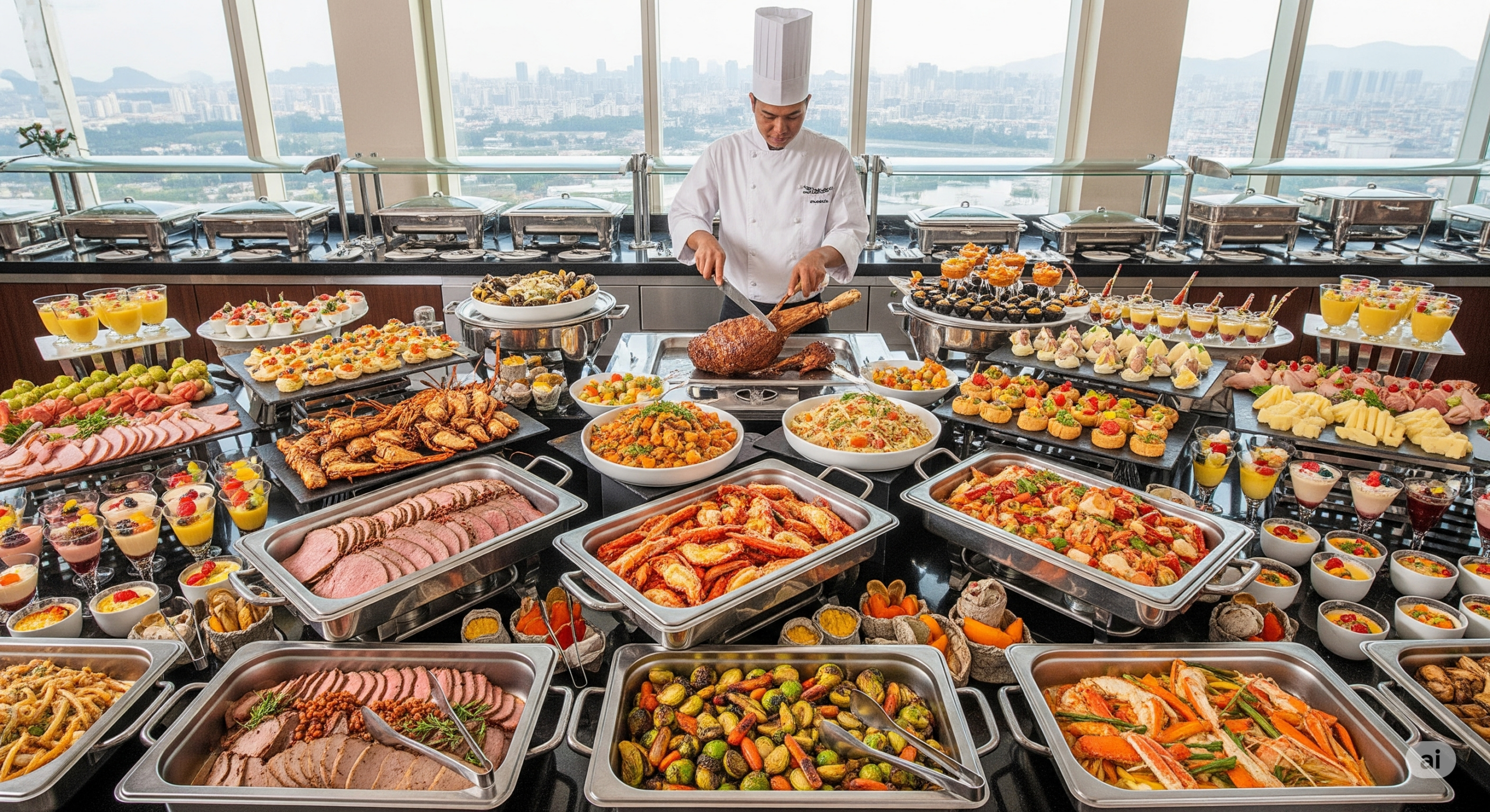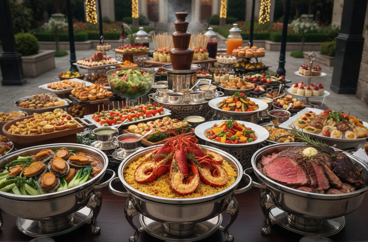「將歐式餐桌藝術的精緻與浪漫融入自助餐的豐富形式,每一道菜都是視覺與味覺的極致享受。」