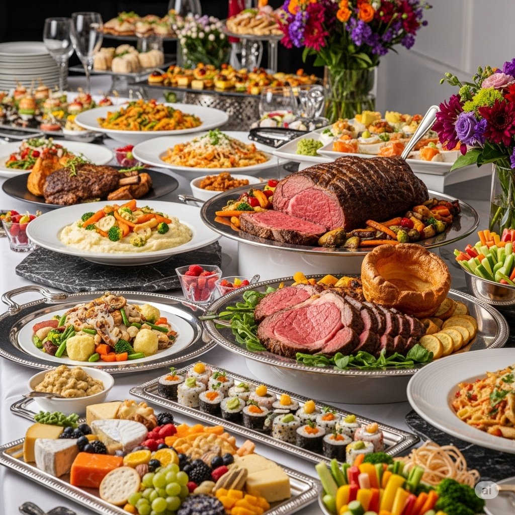 「饗宴外燴王」的法式 BUFFET 不僅提供多樣化的冷熱開胃菜、經典主食與手工甜點,更強調優雅的視覺呈現。